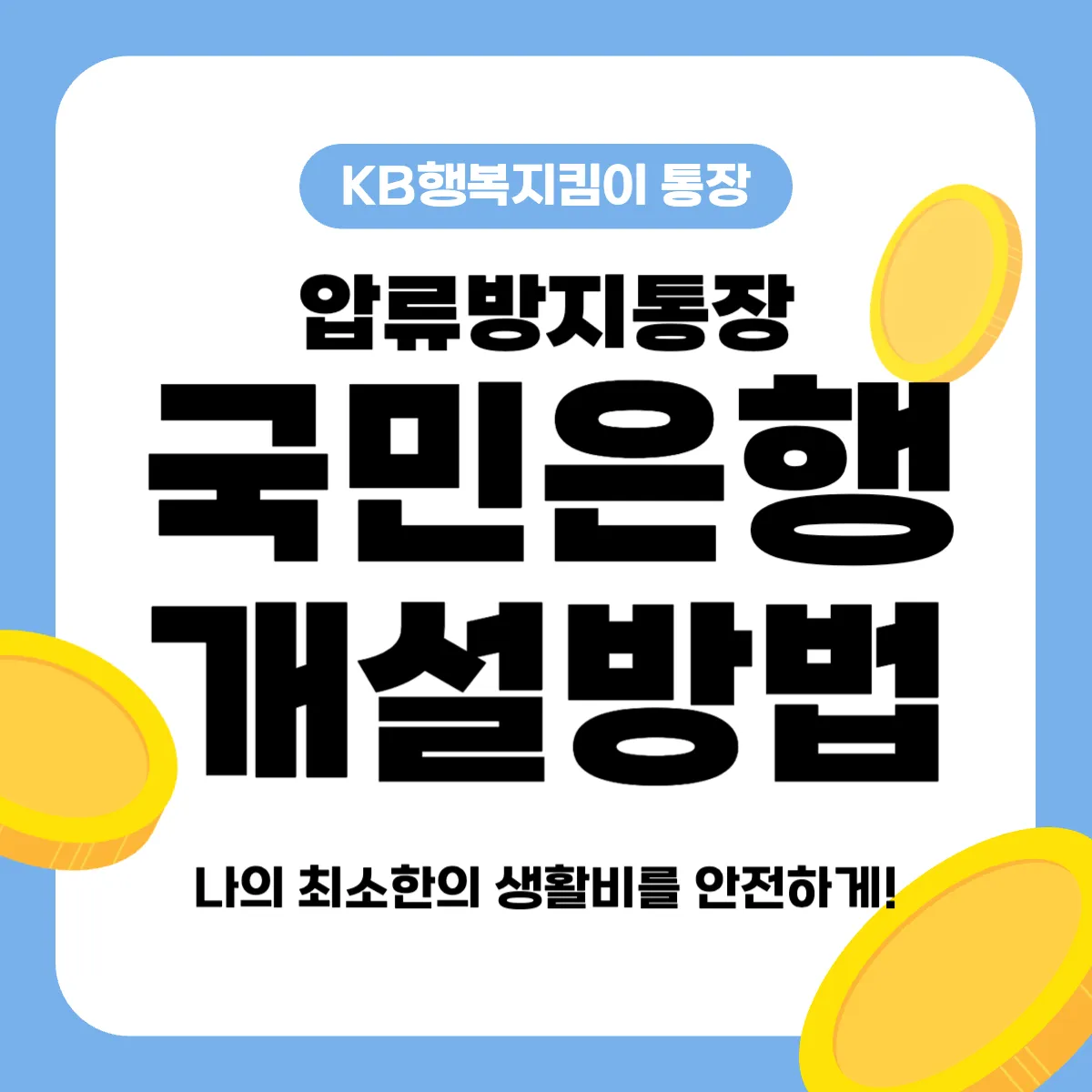 기존 거래 지점이 국민은행이시거나 거주지나 직장 인근에 지점이 있다면 나의 최소한의 생활비를 보호하는 장치로써 압류방지통장 개설을 알아보시기 바랍니다.